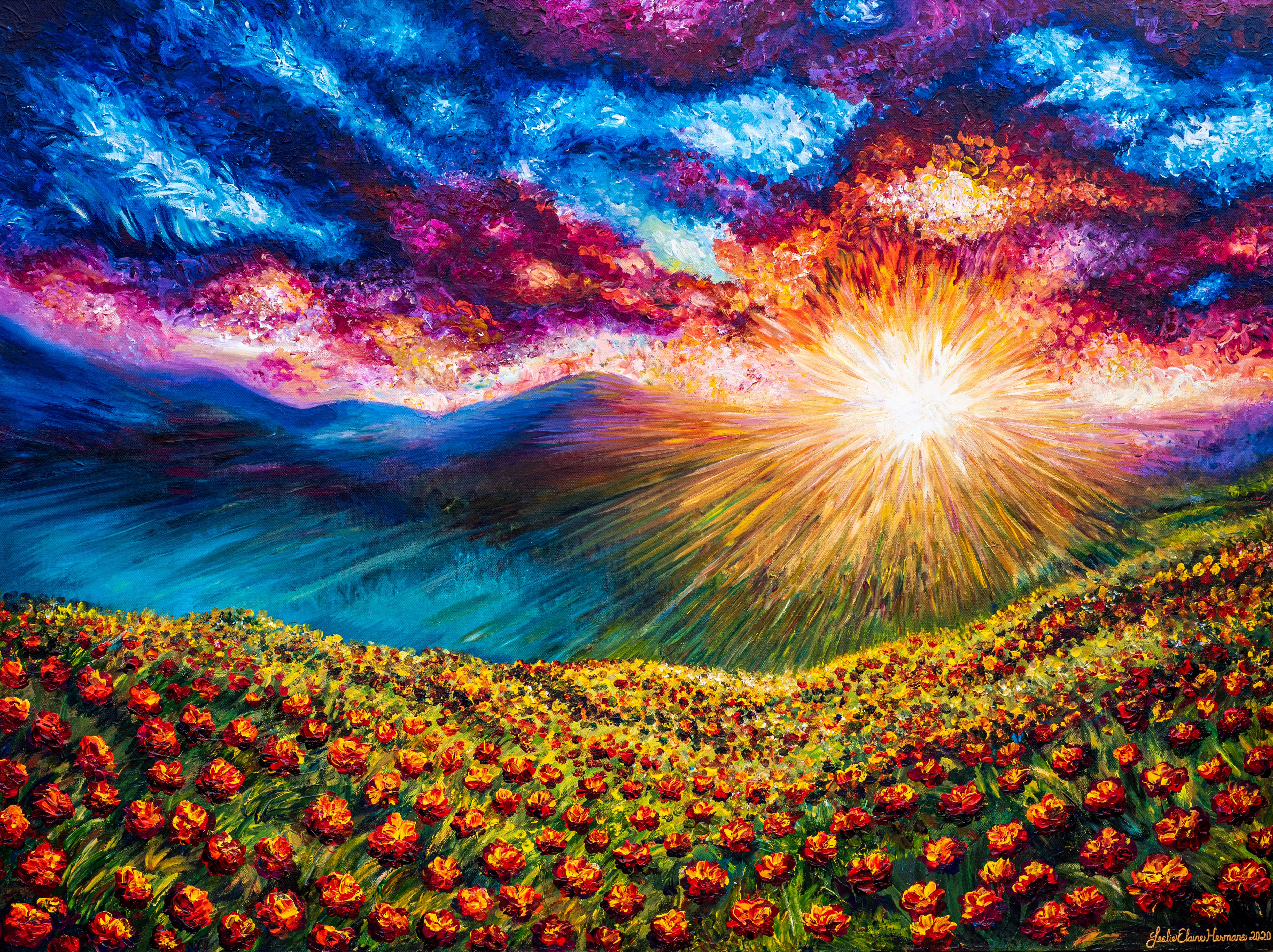 Art: artist's favorites clouds featured flower light rays meadow mountains natural red sky(big sky) sun sunset