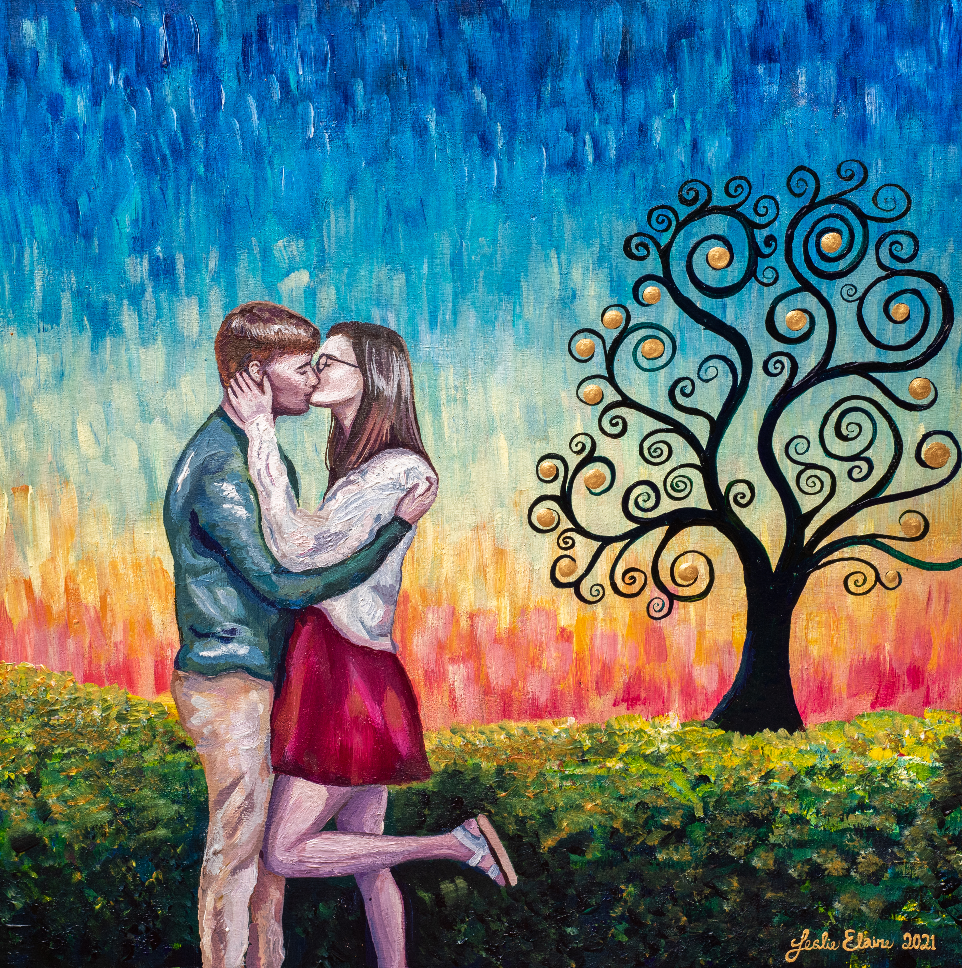 Art: couple featured heart portrait summer sunset swirly tree