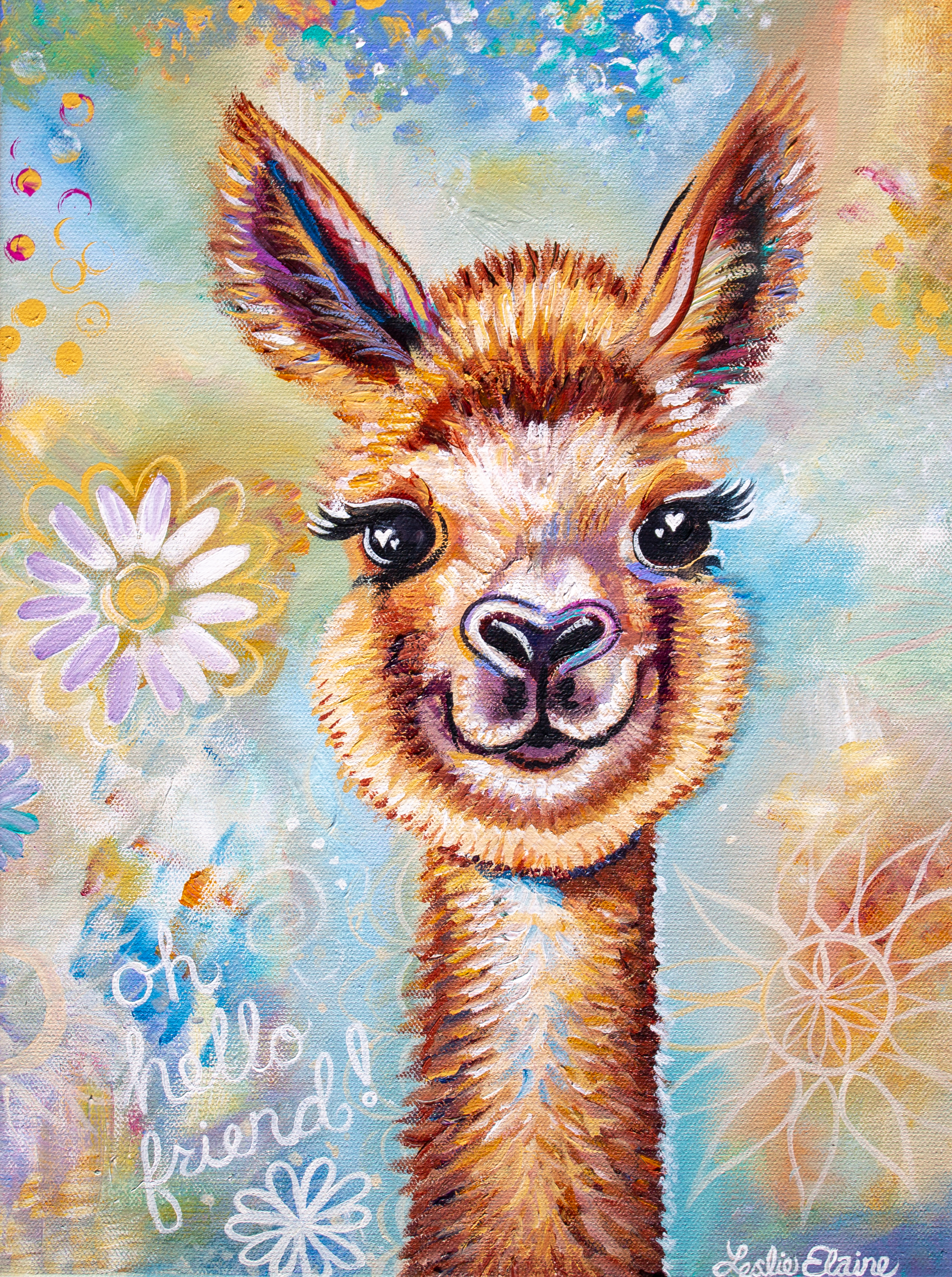 Art: animal cute eye featured flower heart llama