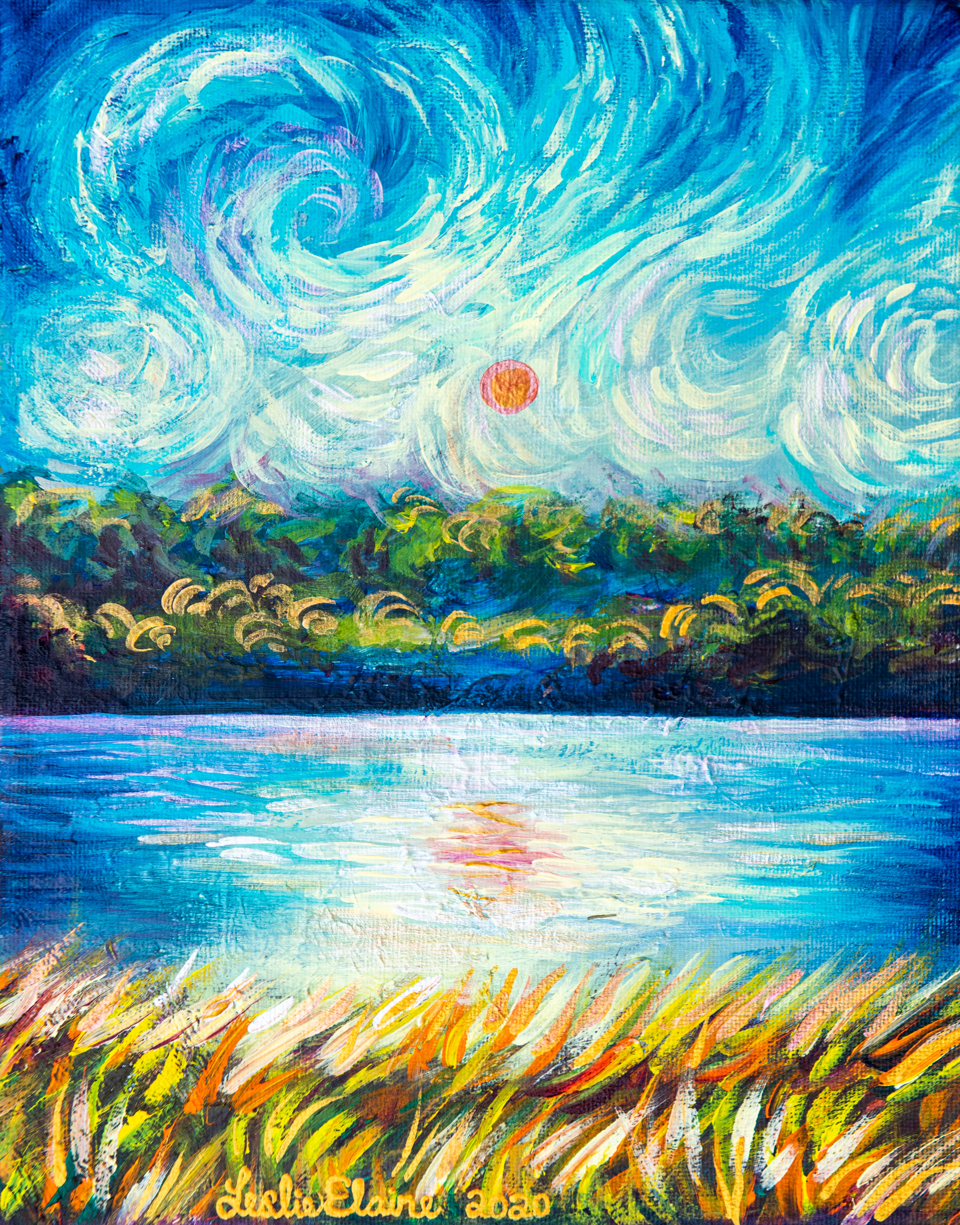Art: featured impressionistic lake Marsh Creek State Park natural sky(big sky) sunset swirly water