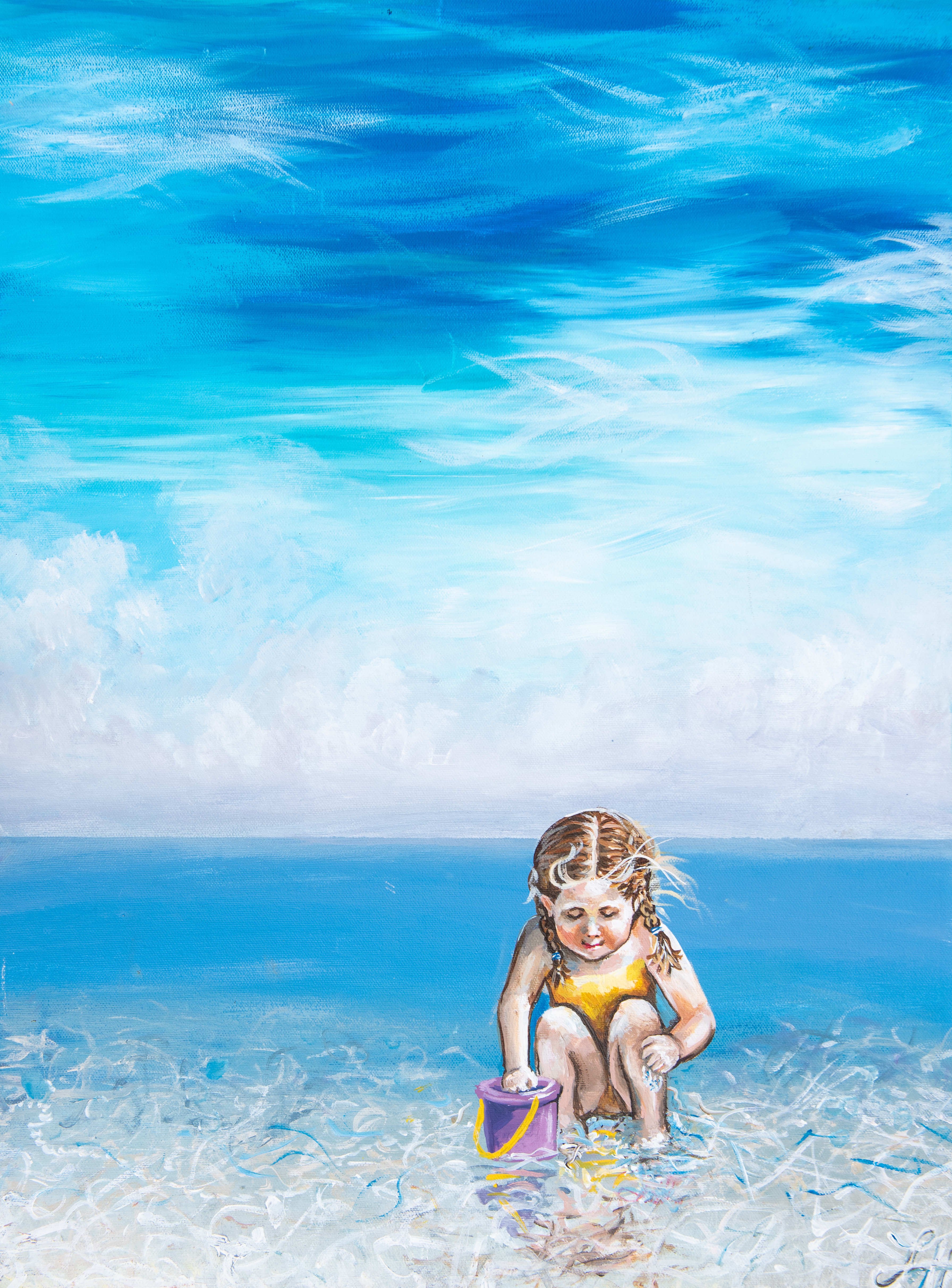 Art: cool/blue featured girl/woman natural ocean sand sky(big sky) summer water